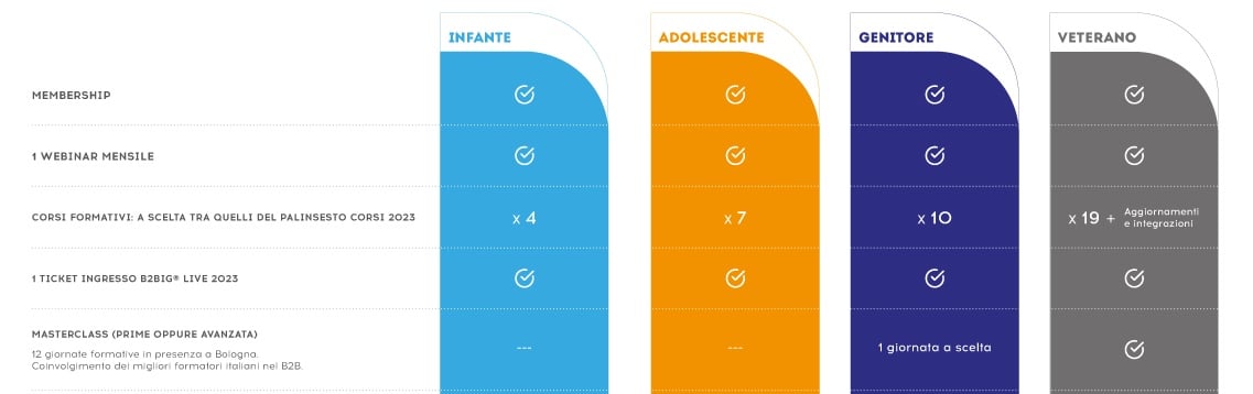 La membership di B2Big® è perfetta per chi cerca un modo per garantirsi L'AGGIORNAMENTO CONTINUO sulle dinamiche che caratterizzano la vita quotidiana di marketers, comunicatori e venditori in contesti di mercato B2B.